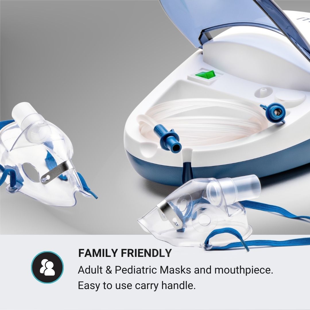 Comes standard with adult & Paediatric masks and Mouthpieces